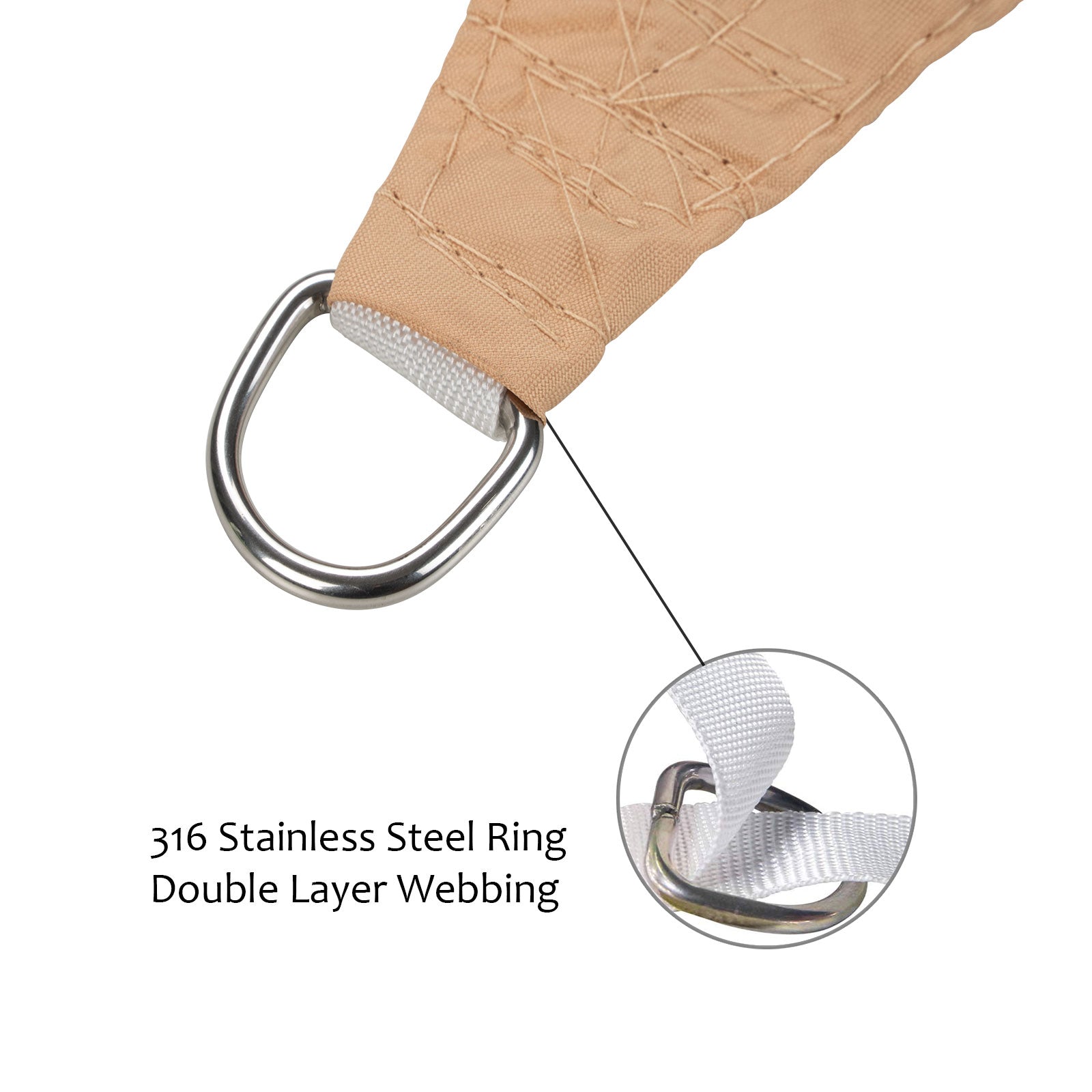 • Curved Edge & Strong Stitching: The waterproof rectangle sunshades are sewn with strong stitching and durable stainless steel D-rings in each corner. The reinforced stitched seams are curved to increase pull strength and prevent dropping.
