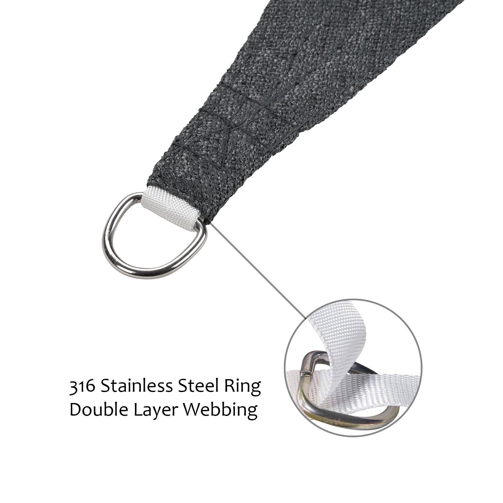 • Curved Edge & Strong Stitching: The rectangle sunshades are sewn with strong stitching and durable stainless steel D-rings in each corner. The reinforced stitched seams are curved to increase pull strength and prevent dropping.